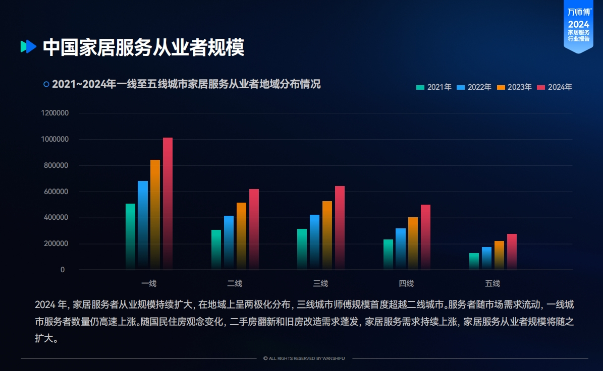 我国度居师傅次要以80后、90后为从,同时满脚国内家居市场对各类技强人才的需求,《2024家居办事行业洞察演讲》聚焦办事者就业生态。